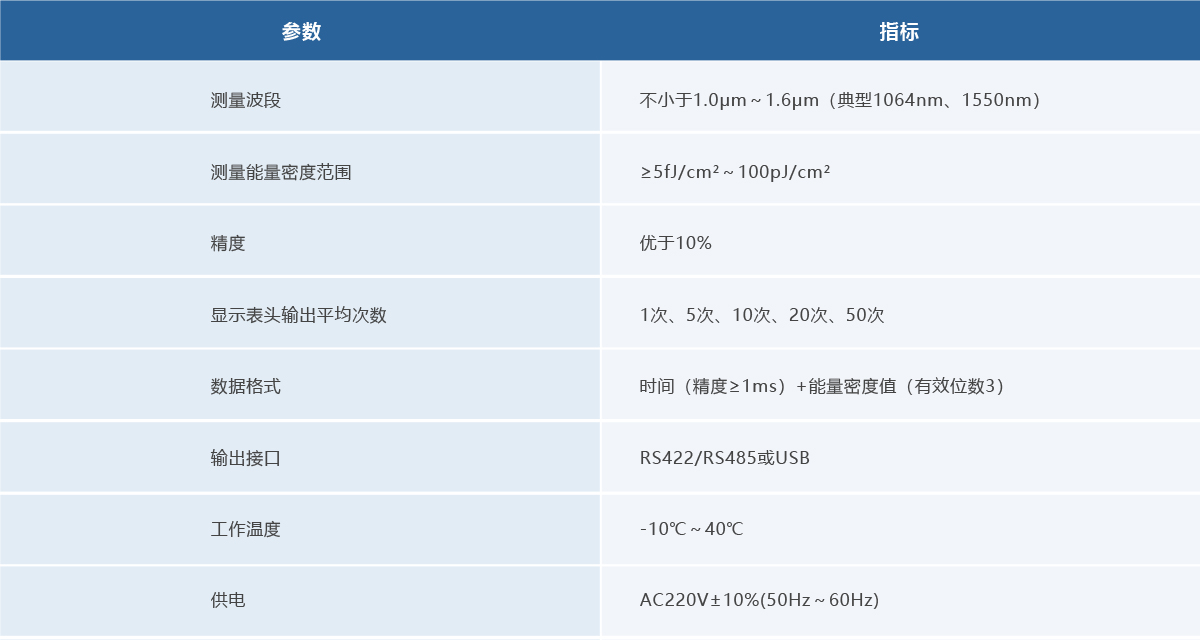 • 高精度测量:精度优于8%,时间精度1ms,能量密度值有效位数3位