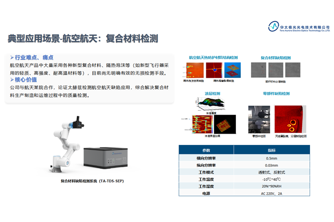 行业需求 公司与航天某院合作,论证太赫兹检测航空航天缺陷应用,综合解决复合材料生产制造和运维过程中的质量检测。