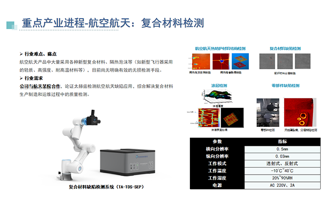 行业需求 公司与航天某院合作,论证太赫兹检测航空航天缺陷应用,综合解决复合材料生产制造和运维过程中的质量检测。