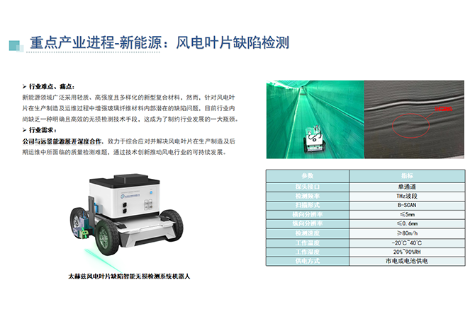 行业难点、痛点:新能源领域广泛采用轻质、高强度且多样化的新型复合材料,然而,针对风电叶片在生产制造及运维过程中增强玻璃纤维材料内部潜在的缺陷问题,目前行业内尚缺乏一种明确且高效的无损检测技术手段,这成为了制约行业发展的一大瓶颈。